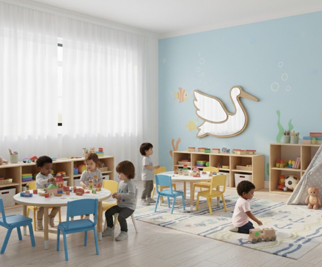• Espejo Acrílico de Seguridad: El área reflectante está hecha de cristal acrílico (o plexiglás), una alternativa más segura y resistente que el vidrio tradicional. Esto minimiza el riesgo de rotura y lesiones, siendo ideal para un entorno infantil.