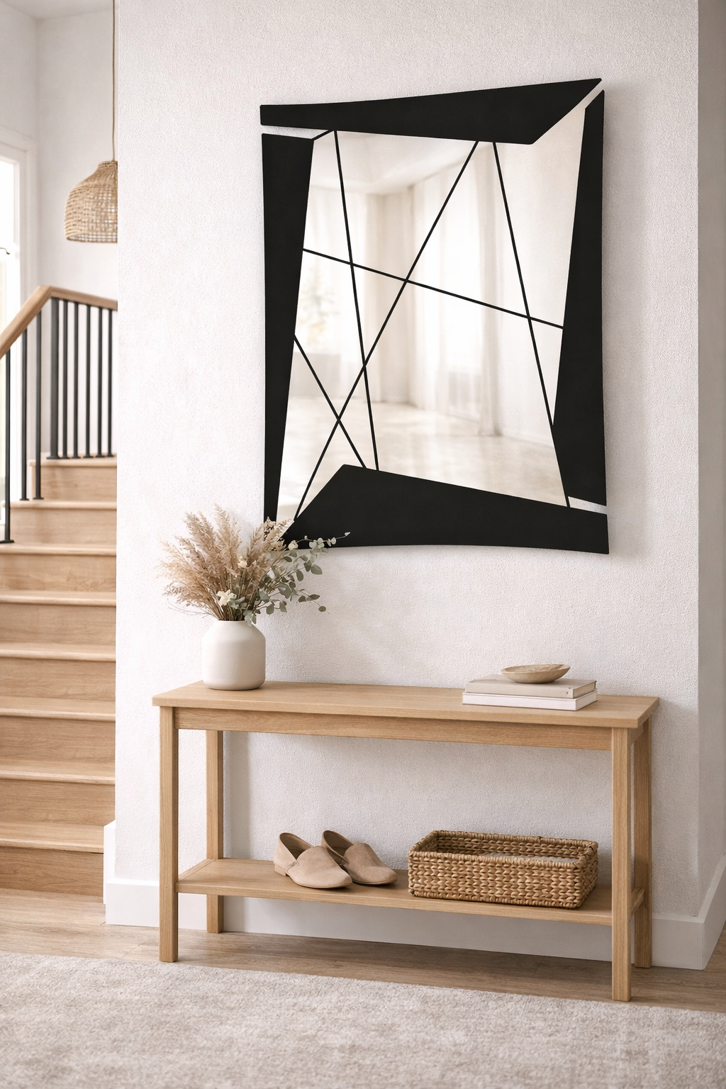 Efecto Multi-Reflejo: La disposición de los diferentes paneles de espejo no solo es decorativa, sino que también captura y fragmenta la luz y el espacio desde múltiples ángulos, creando una sensación de mayor amplitud y profundidad.